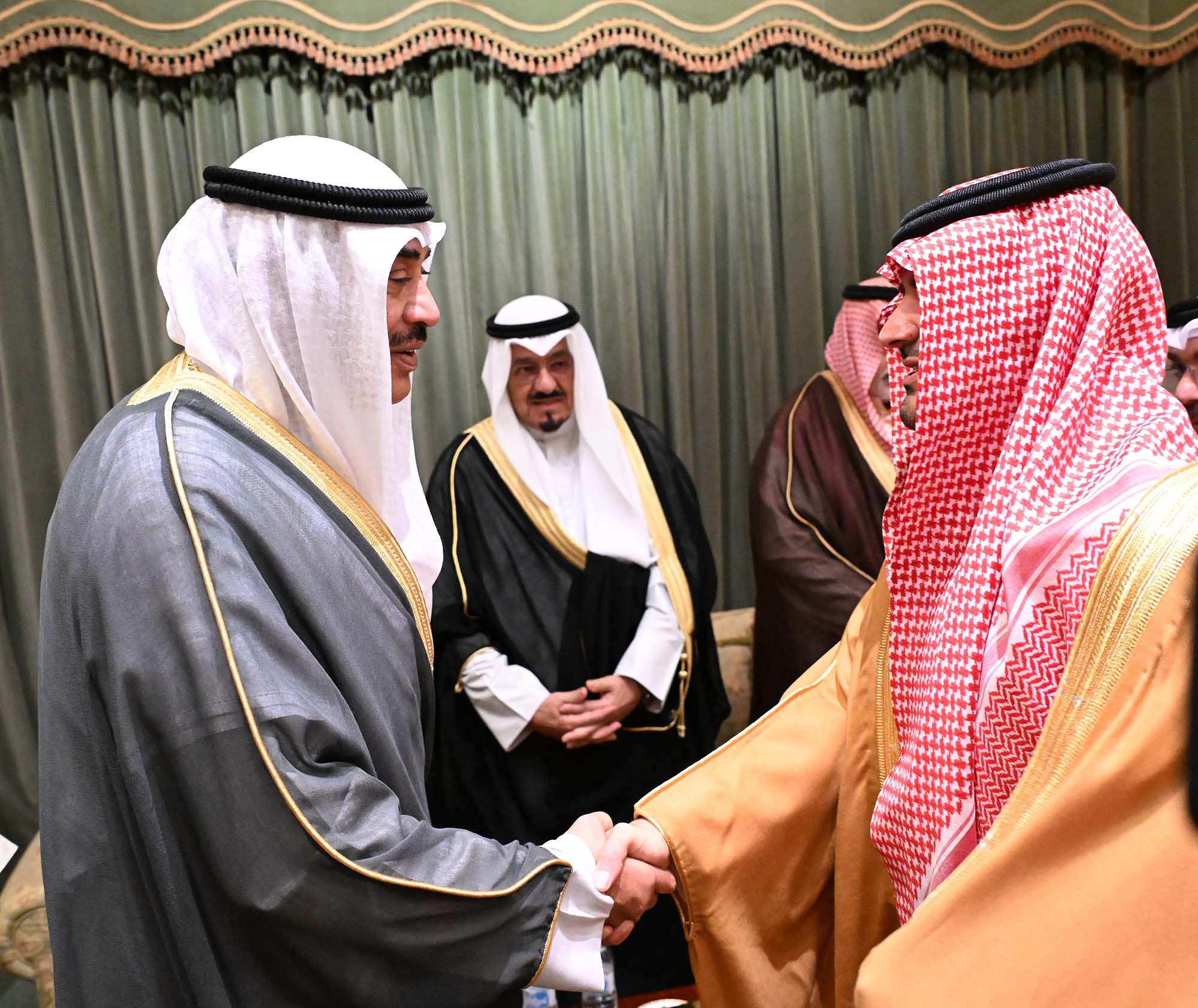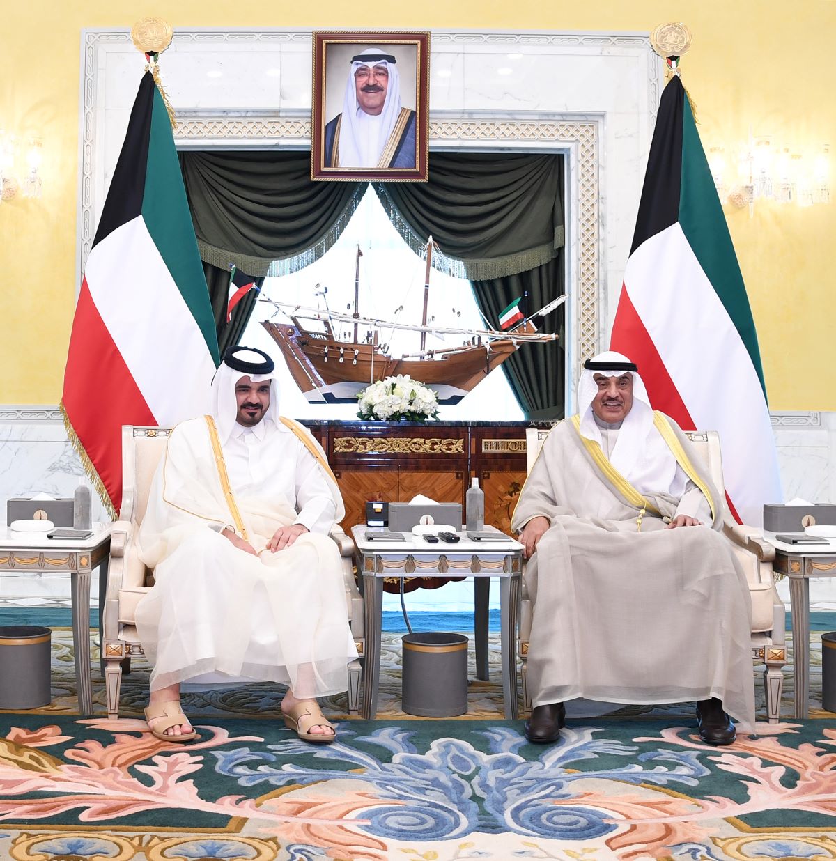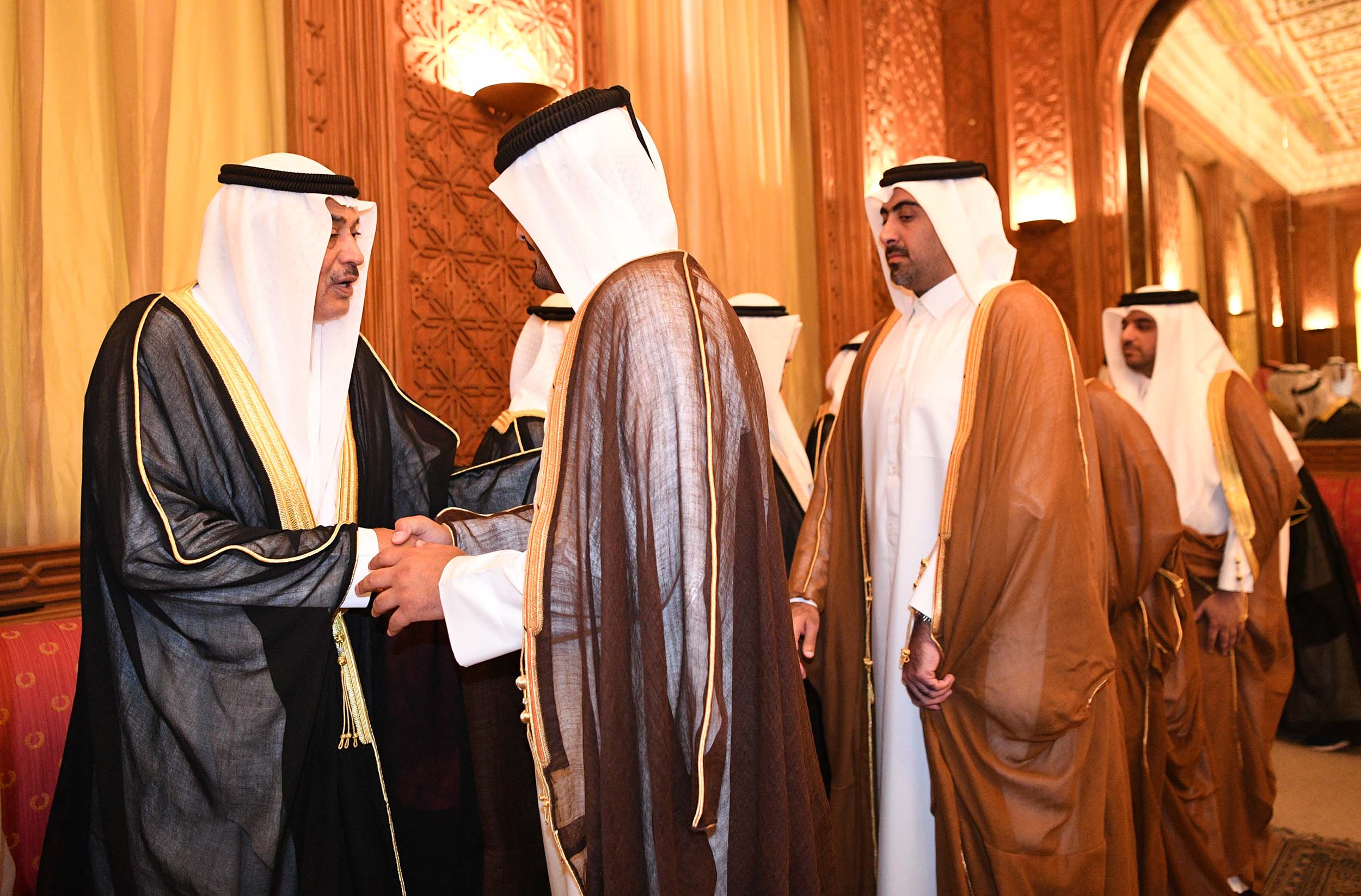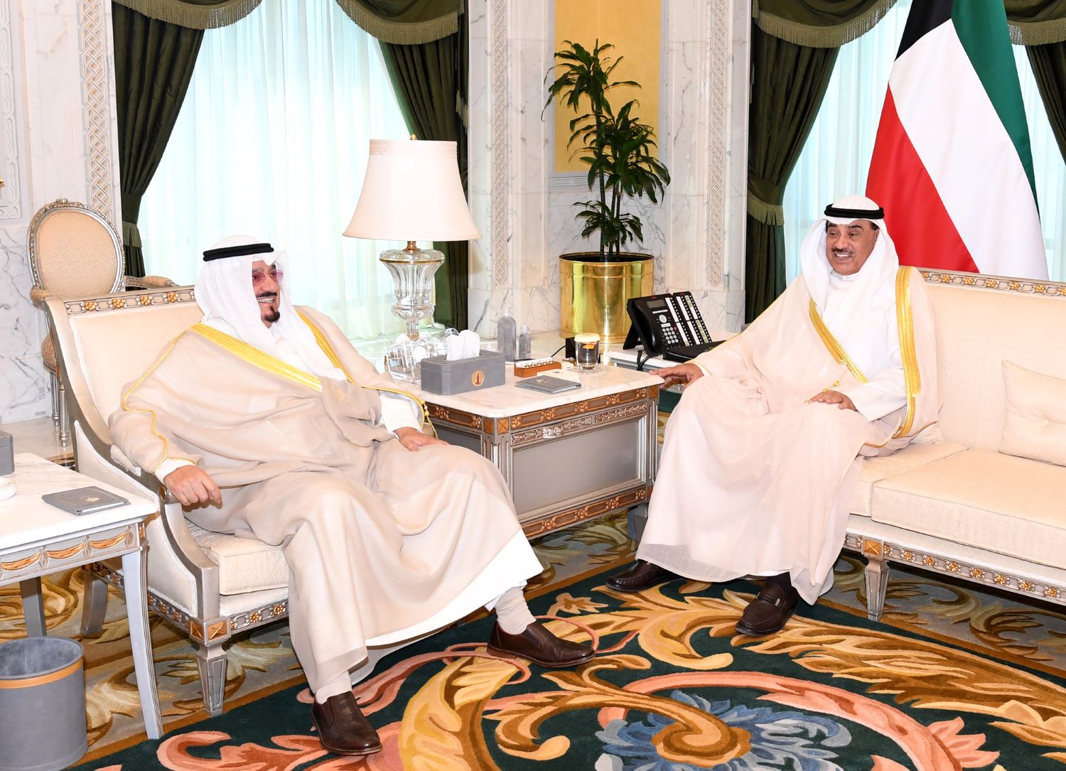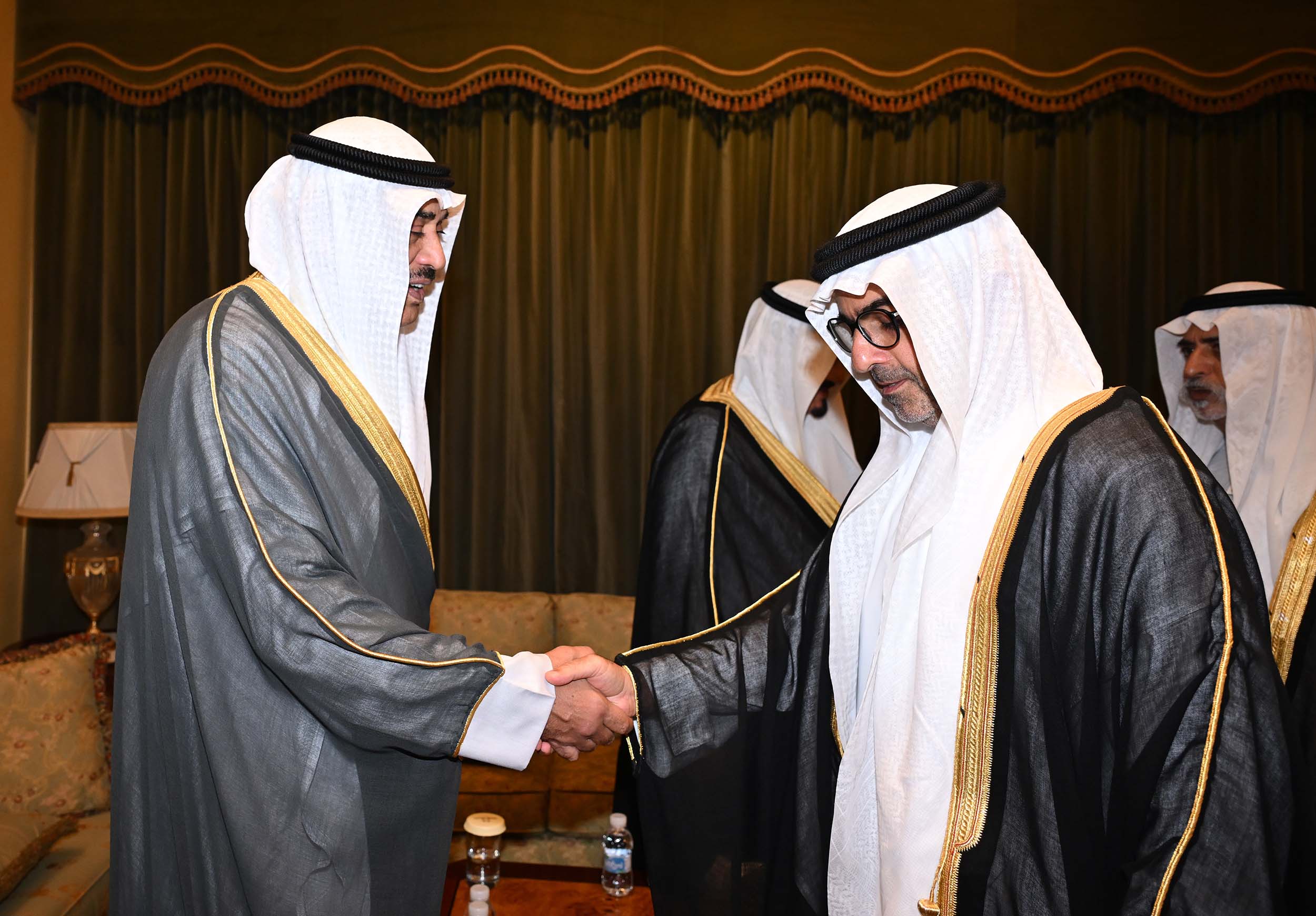 His Highness the Crown Prince Sheikh Sabah Khaled Al-Hamad Al-Sabah received His Highness Sheikh Ahmad Nawaf Al-Ahmad Al-Jaber Al-Sabah at B...
