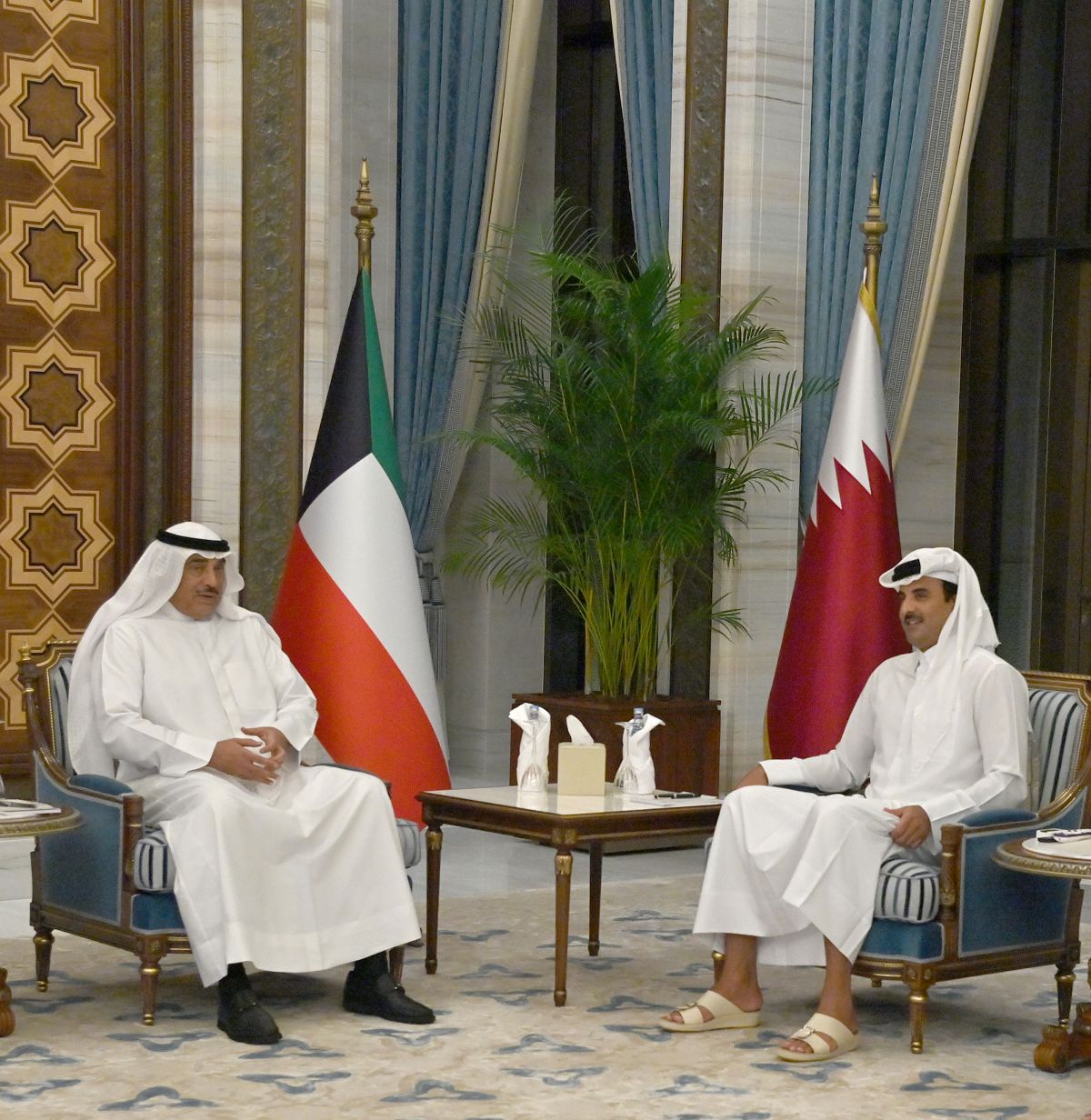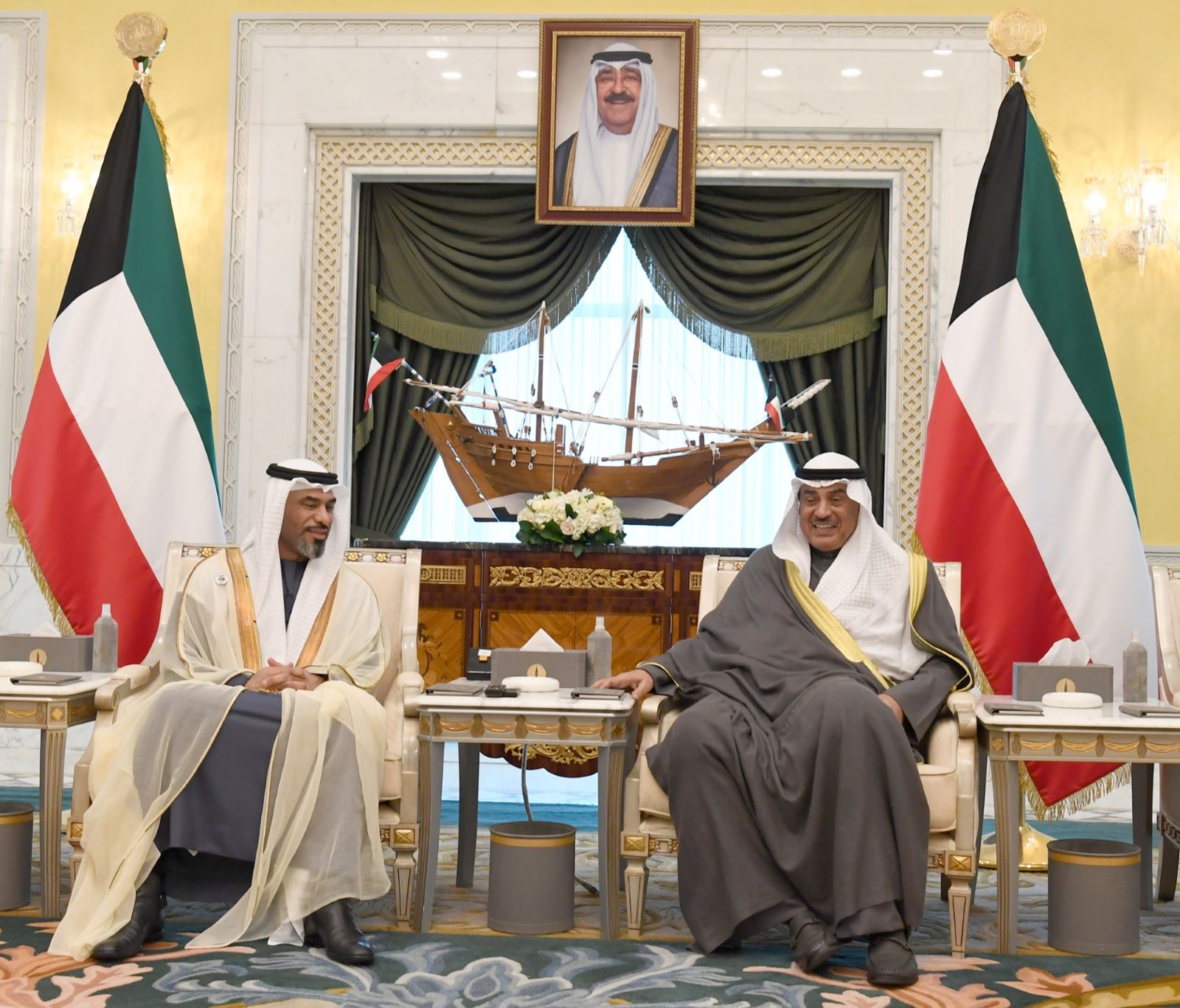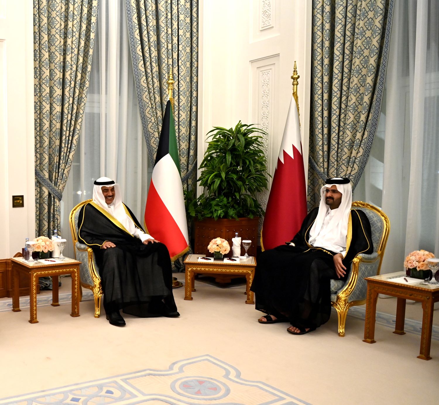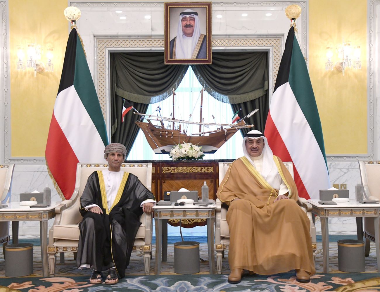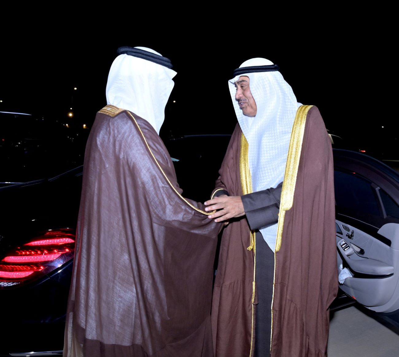 His Highness the Crown Prince Sheikh Sabah Khaled Al-Hamad Al-Sabah received His Highness Sheikh Ahmad Nawaf Al-Ahmad Al-Jaber Al-Sabah at B...