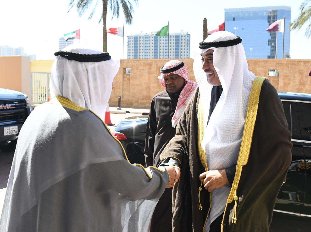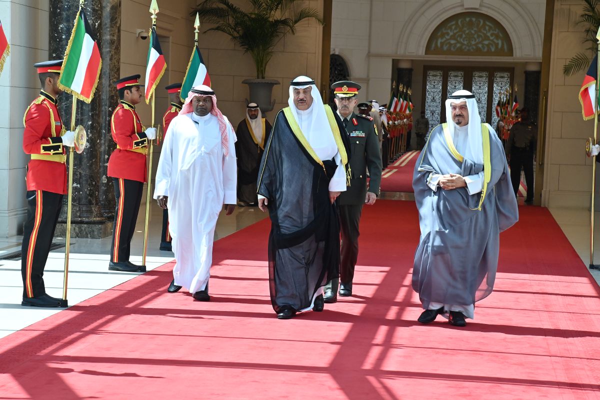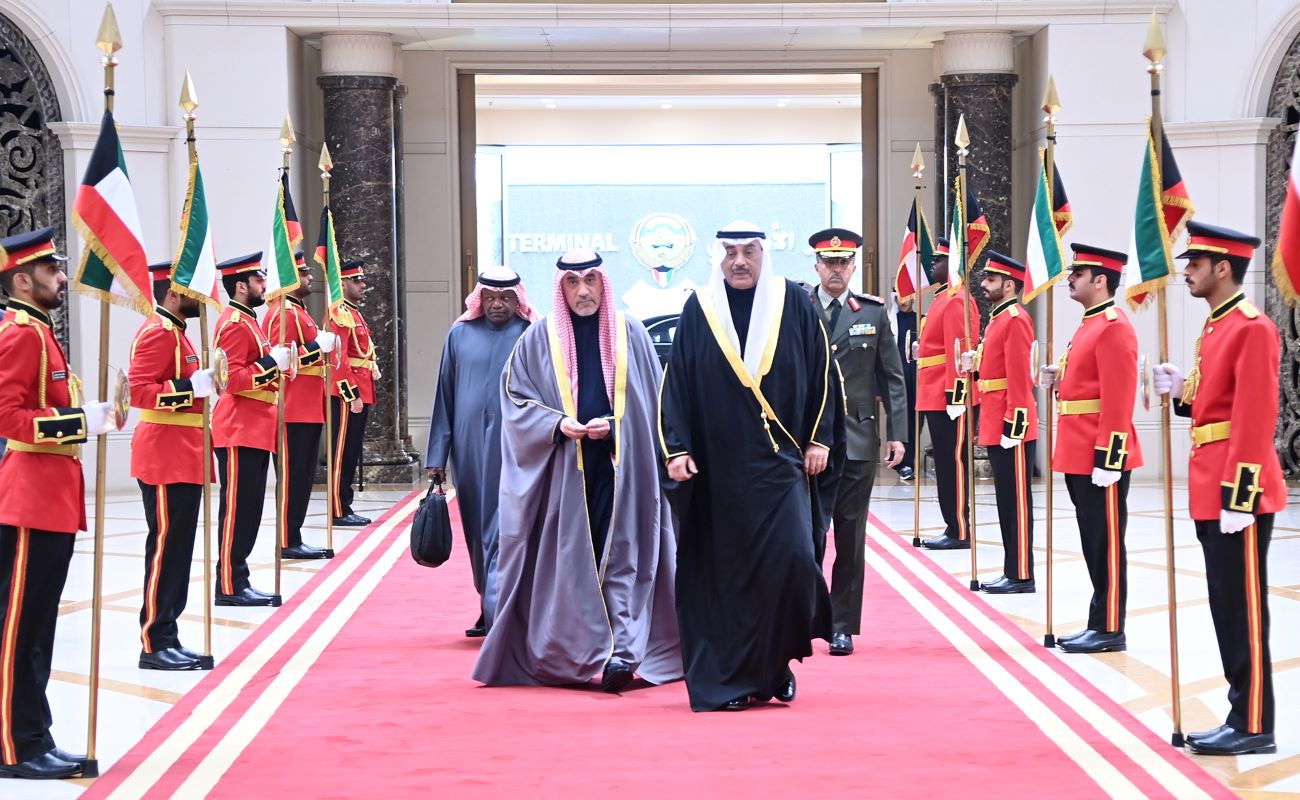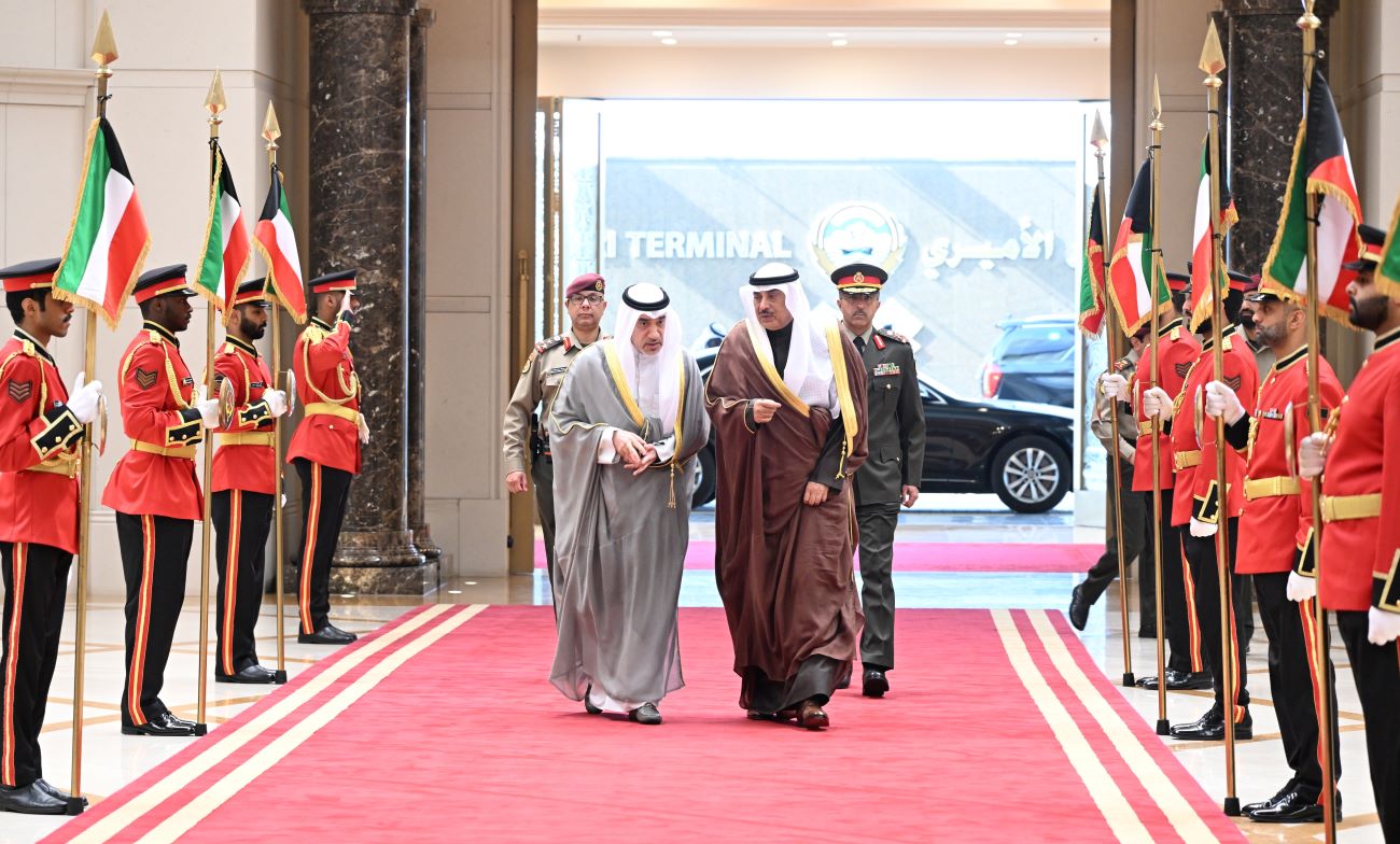 His Highness the Crown Prince Sheikh Sabah Khaled Al-Hamad Al-Sabah, accompanied by His Highness the Prime Minister Sheikh Ahmad Abdullah Al...