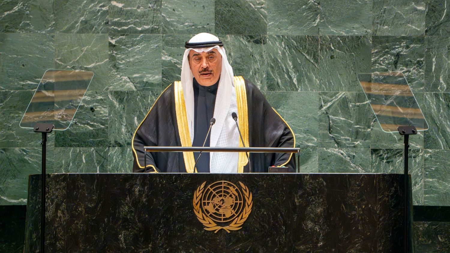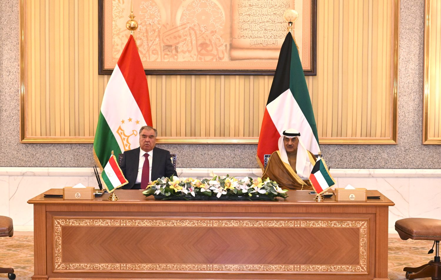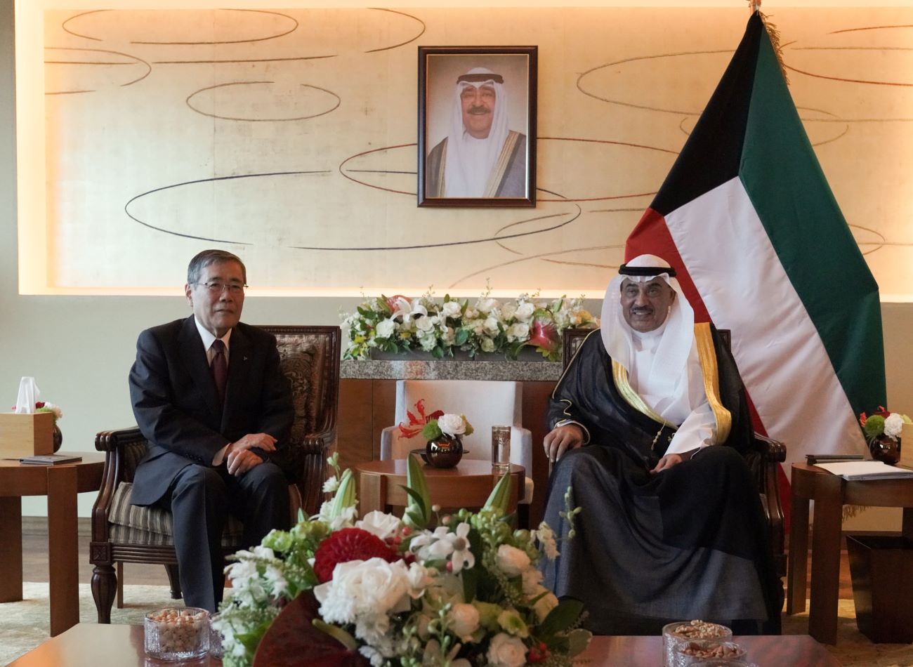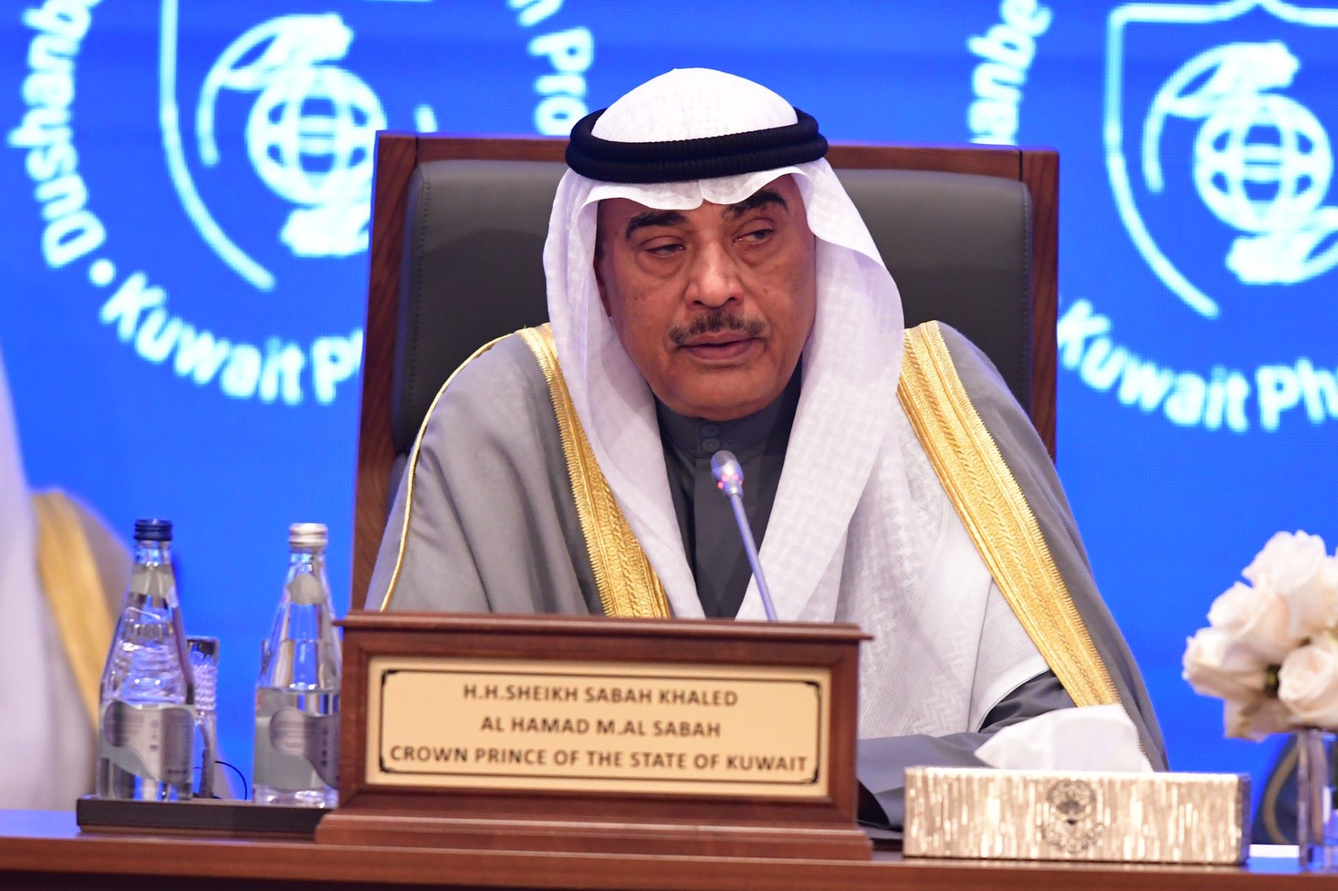 His Highness the Crown Prince Sheikh Sabah Khaled Al-Hamad Al-Sabah, accompanied by His Highness the Prime Minister Sheikh Ahmad Abdullah Al...